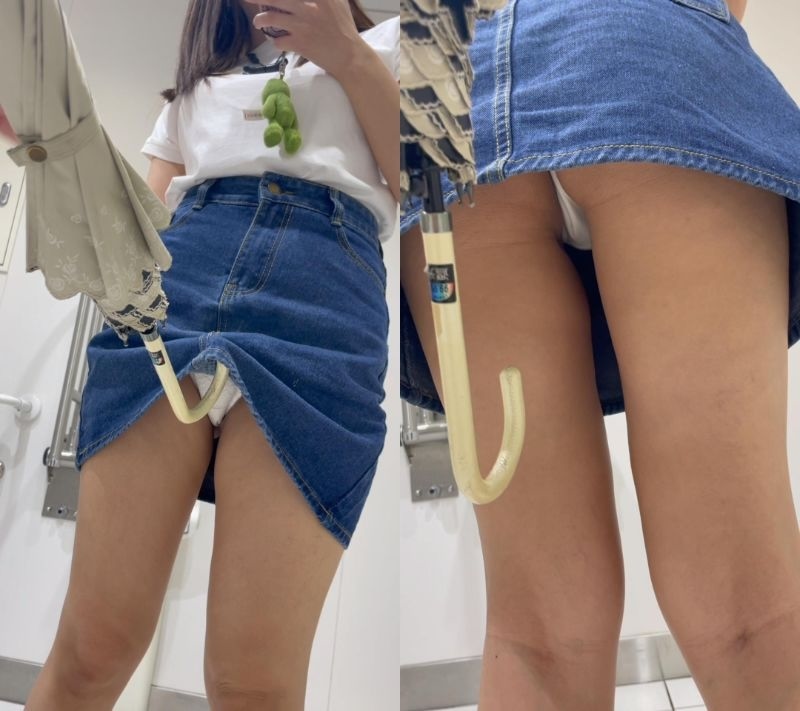 JD盗撮日記21 あの超仲良し二人組が私服で登場!ペアルックミニスカデニムJDを電車内とトイレ内で盗撮【※完全主観27分超撮影】