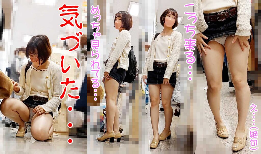 撮影バレ!盗撮に気づいてもパンティを隠さない美少女に勇気を出して初めてのおさわり・・・ ※交渉痴かん