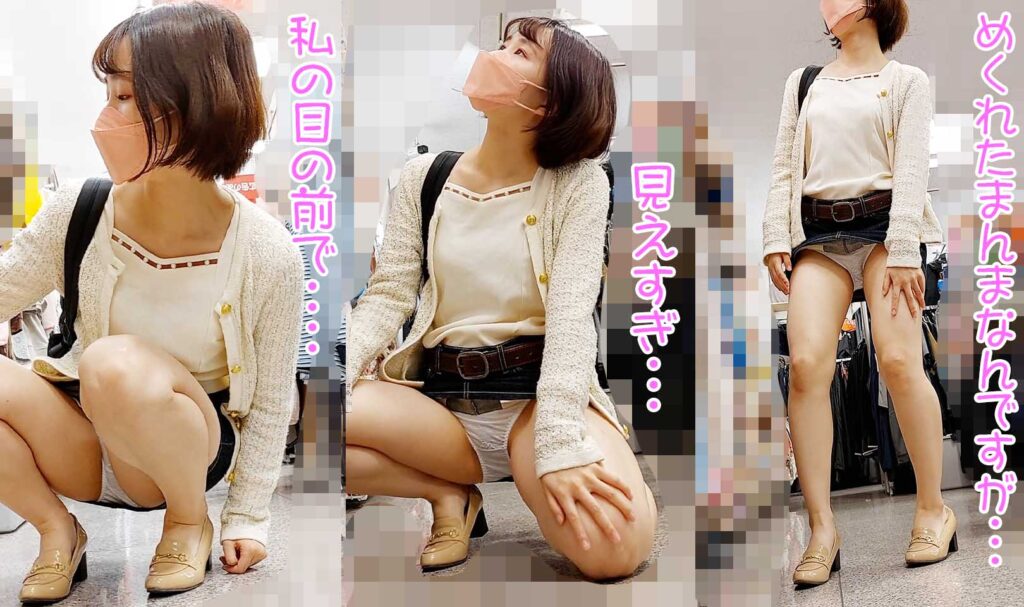 撮影バレ! 盗撮に気づいてもパンティを隠さない巨乳美女が見せつけてきた・・・