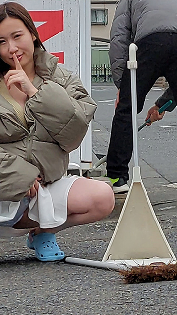 撮影バレ! 盗撮に気づいてもパンティを隠さないJKが見せつけてきた・・・