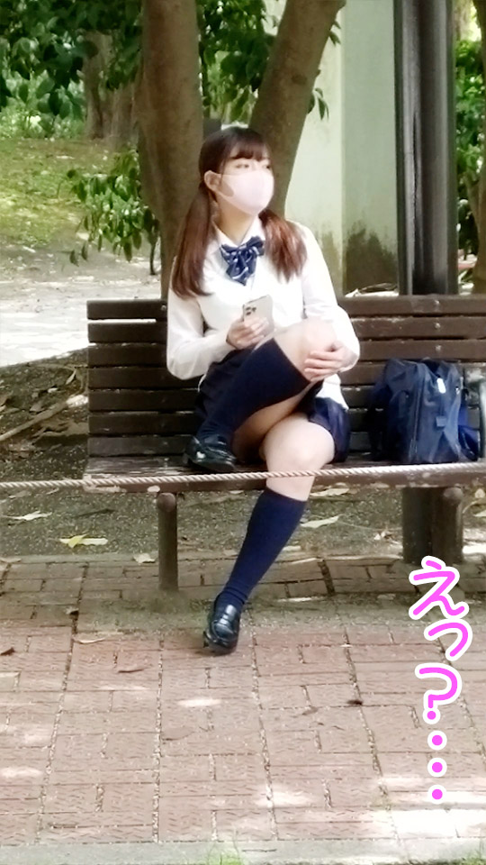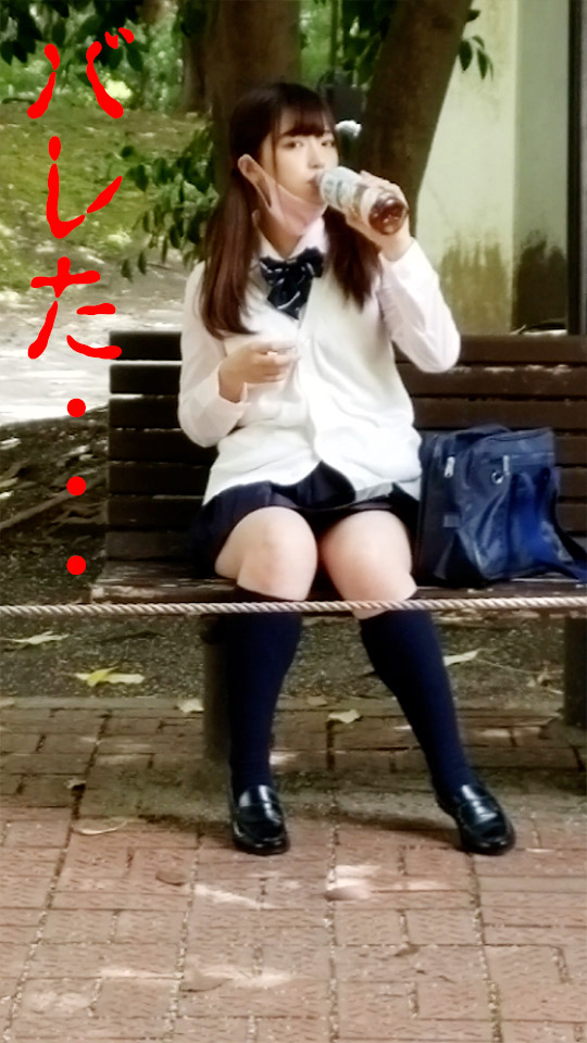撮影バレ! 盗撮に気づいてもパンティを隠さないJKが近づいてきて・・・⑤
