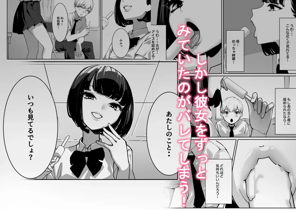 同じクラスの「倉木 唯奈」のことが気になっていた主人公の「佐伯」。日頃から彼女の姿を目で追っていたが、特にくちびるや舌など口元に惹かれていた。そんなある日、保健室で2人きりになる機会が訪れる。興奮を抑えようとする佐伯だったが、なんと視線を送っていたことが唯奈本人にバレていた!? しかも彼女のほうから積極的にスキンシップを取ってきて……。